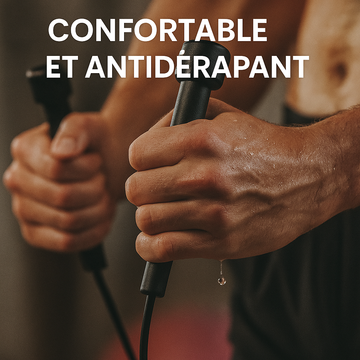- Matériau de Haute Qualité : Fabriquée en PVC de qualité supérieure, la corde est dotée d’un manche antidérapant. Le corps de la corde est épaissi pour éviter les enchevêtrements et résister à l’usure, même en cas d'utilisation prolongée.