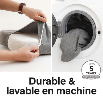 La mousse reste indéformable jusqu’à 5 ans, et la housse se retire facilement pour un nettoyage rapide.