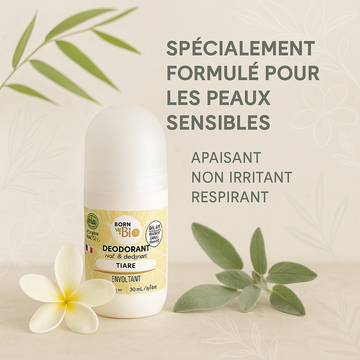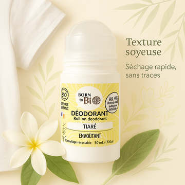 Pour profiter pleinement des bienfaits de notre Dédorant sans aluminium et anti-odeur Tiaré, suivez ces conseils d’utilisation. Assurez-vous d’abord que votre peau est propre avant application. Appliquez le déodorant sur des aisselles propres et sèches pour une efficacité optimale. Évitez l’utilisation sur une peau irritée ou fraîchement rasée afin d’éviter toute sensation d’inconfort. Notre déodorant bio est facile à utiliser grâce à son format roll-on pratique. Appliquez simplement le produit directement sur les aisselles pour une sensation de fraîcheur durable. Suivez ces gestes simples pour tirer le meilleur parti de la fraîcheur envoûtante de notre déodorant et rester agréablement parfumé tout au long de la journée.