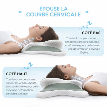 Épouse parfaitement la courbure naturelle du cou, maintenant la tête, les cervicales et la colonne vertébrale alignées pour réduire douleurs, raideurs et tensions aux épaules.