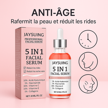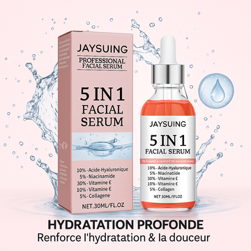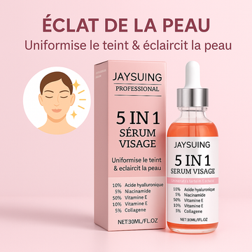 Jaysuing Sérum Visage à l’Acide Hyaluronique 5 en 1 - Hydratant, Éclaircissant, Anti-Âge, Vitamine C, Resserre les Pores, Soin de la Peau 30 ml